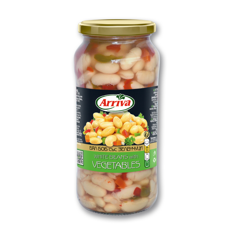 Ingredients: White beans, green pepper, red pepper, carrot, onion, water, salt, antioxidant E385, preservative E223. Contains sulphites.